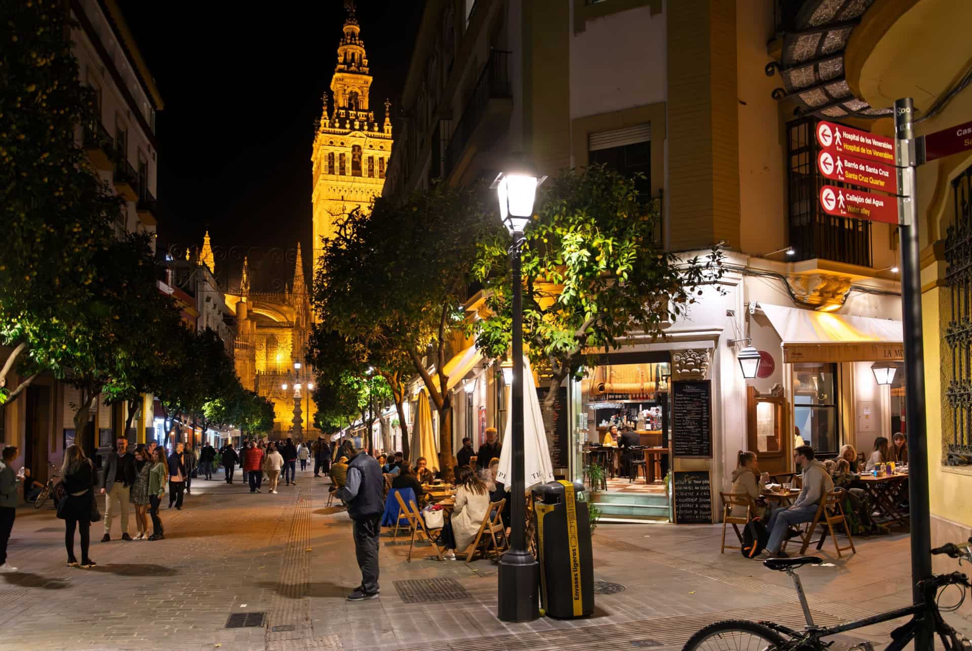 Même lorsque le soleil se couche et que Séville se plonge dans le noir, elle garde une ambiance festive et dynamique. Les restaurants, les bars et les boîtes de nuit se réveillent laissant place à des soirées animées jusqu’au petit matin 🥳 Et il y en a pour tous les goûts ! Outre les établissements classiques, vous pouvez aussi choisir de passer votre soirée dans des restaurants à thème ou même assister à un des nombreux spectacles de flamenco de Séville pour vous immerger dans la culture locale 💃
